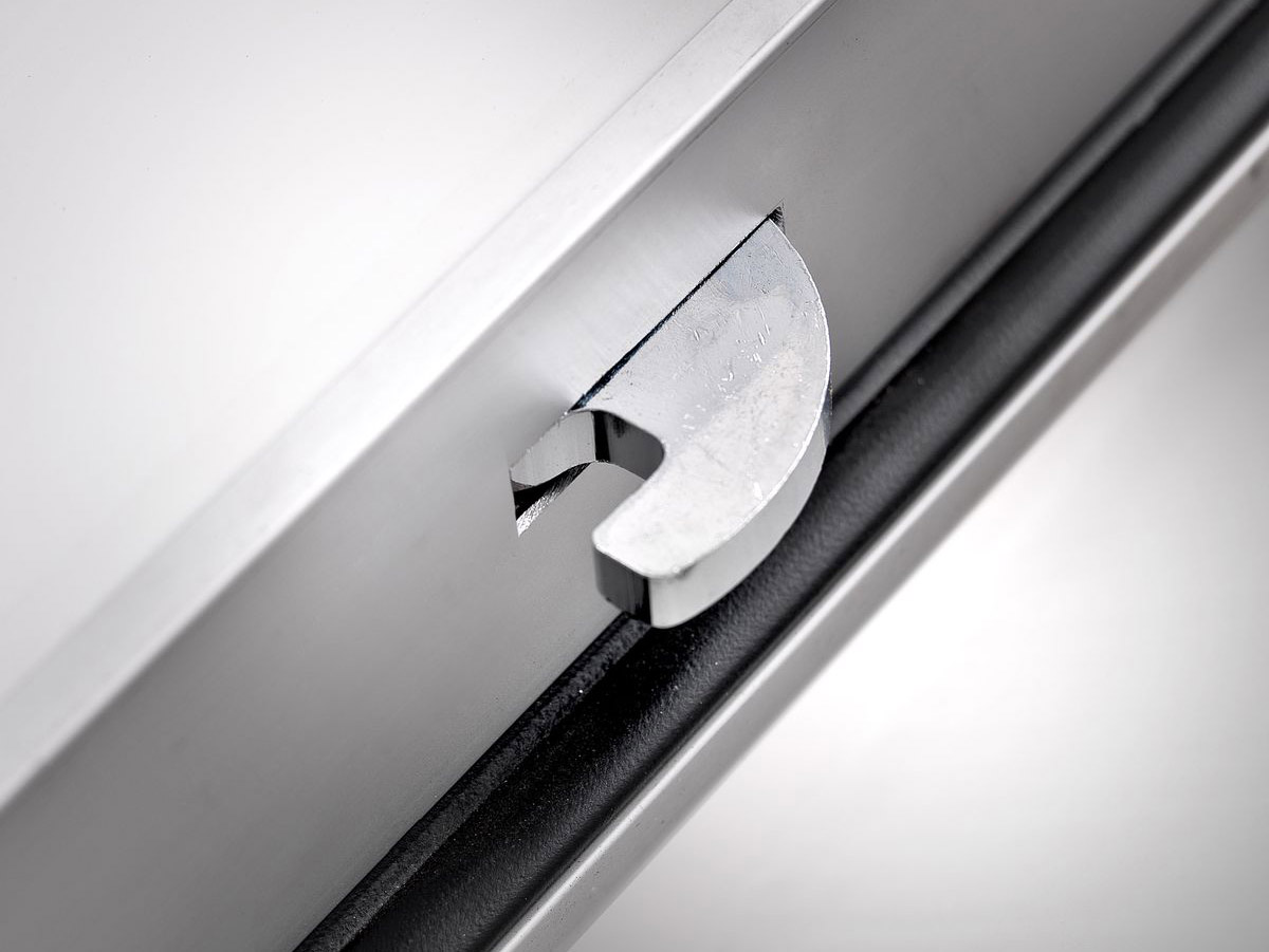 La bisagra oculta de cinco ejes, Macron 5.0®, permite el doble solape de hoja con apertura máxima de 180° consiguiendo un conjunto totalmente coplanario con el paramento. Este sistema garantiza un cierre perfecto aumentando todas las prestaciones de confort.